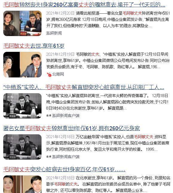 读者从这些碎片里慢慢拼出一个轮廓:毛阿敏不是那种会被豪门生活改变的人,她的价值判断很稳定。 这种稳定从哪里来,后面再说。先把关键事件摆出来。2021年12月,毛阿敏的丈夫解直锟去世,属于典型的突发事件。在一次运动中出现心脏问题,经抢救无效离世,年纪并不大。
