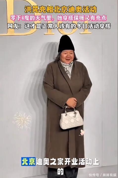 北京的冬天一冷,很多精致就会露出破绽。红毯上的露肩礼服、硬撑的笑、冻到发白的手指,看起来都像是一场集体默契:谁也不说冷,但谁也不想输。 可在12月一场奢牌新店的开业活动上,洪晃偏偏不按这套来。她穿着厚大衣,针织帽压得低低的,手里拎着名牌包,却像拎菜篮子一样随意。